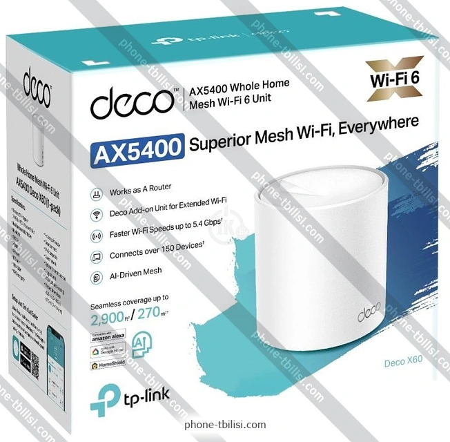 TP-LINK Deco X60 V3.2 (1 шт.), ГрузияБренд: TP-LINK Зимняя скидка 2025 г.: 15%, экономия: 53 ₾