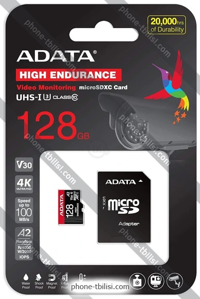 Карта памяти ADATA High Endurance 128Gb AUSDX128GUI3V30SHA2-RA1, ГрузияБренд: ADATA Весенняя скидка 2026 г.: 15%, экономия: 11 ₾