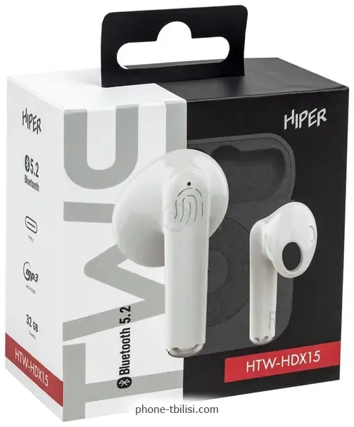 Наушники Hiper TWS MP3 HTW-HDX15, ГрузияБренд: Hiper Весенняя скидка 2026 г.: 10%, экономия: 3 ₾
