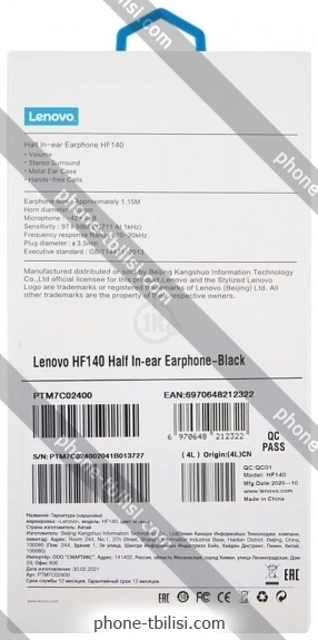 Наушники Lenovo HF140 - купить в Тбилиси, Грузия.Бренд: Lenovo Осенняя скидка 2025 г.: 15%, экономия: 3 ₾