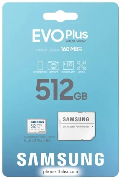 Карта памяти Samsung EVO Plus 2024 microSDXC 512GB (с адаптером), ГрузияБренд: Samsung Весенняя скидка 2026 г.: 20%, экономия: 21 ₾