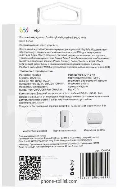 | VLP Dual MagSafe Power Bank купить недорого с бесплатной доставкой по Грузии | |