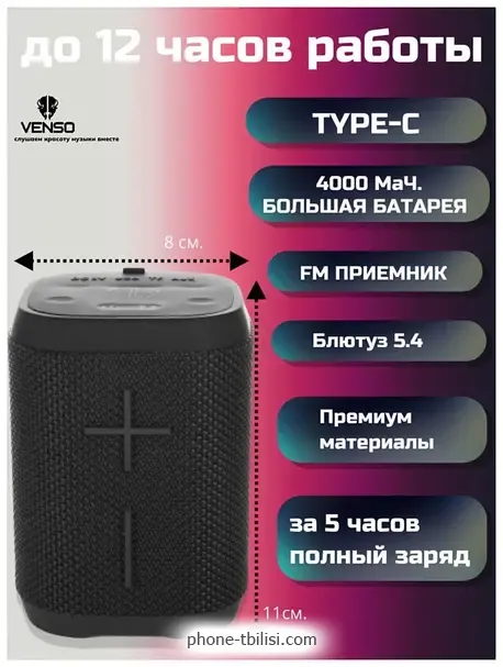Портативная акустика Venso Superia RM-10, ГрузияБренд: Venso Весенняя скидка 2026 г.: 15%, экономия: 8 ₾